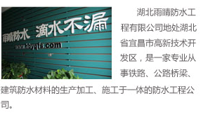 湖北雨睛防水工程有限公司地處湖北宜昌高新技術(shù)公司獲得了國(guó)家質(zhì)量管理體系認(rèn)證證書,也取得了湖北省建筑防水材料專業(yè)協(xié)會(huì)會(huì)員資格;并榮獲了湖北省建設(shè)廳頒發(fā)的建筑施工貳......[更多]